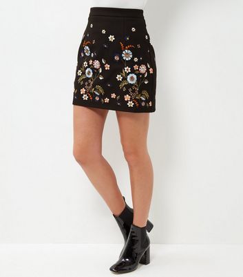 Floral Embroidered A-Line Skirt - New Look